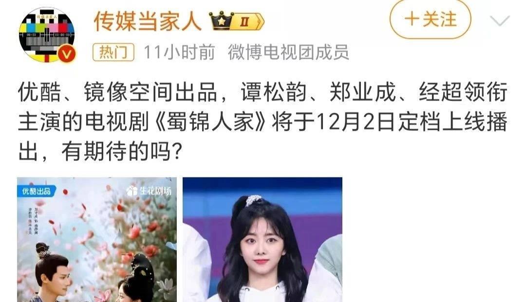 天然还莫得通知具体定档期间,但网上的一些影视文娱博主,也曾流露了《蜀锦东说念主家》行将接档《珠帘玉幕》,于2024年12月2日,同不雅众碰头。